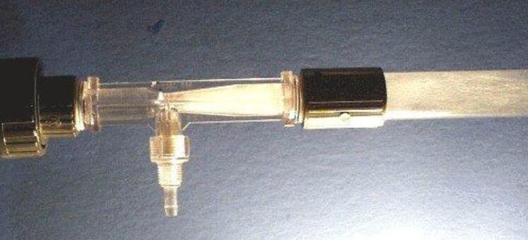 空氣被吸入文丘里管/注射器 - 注意吸入口后存在的數千個小氣泡。